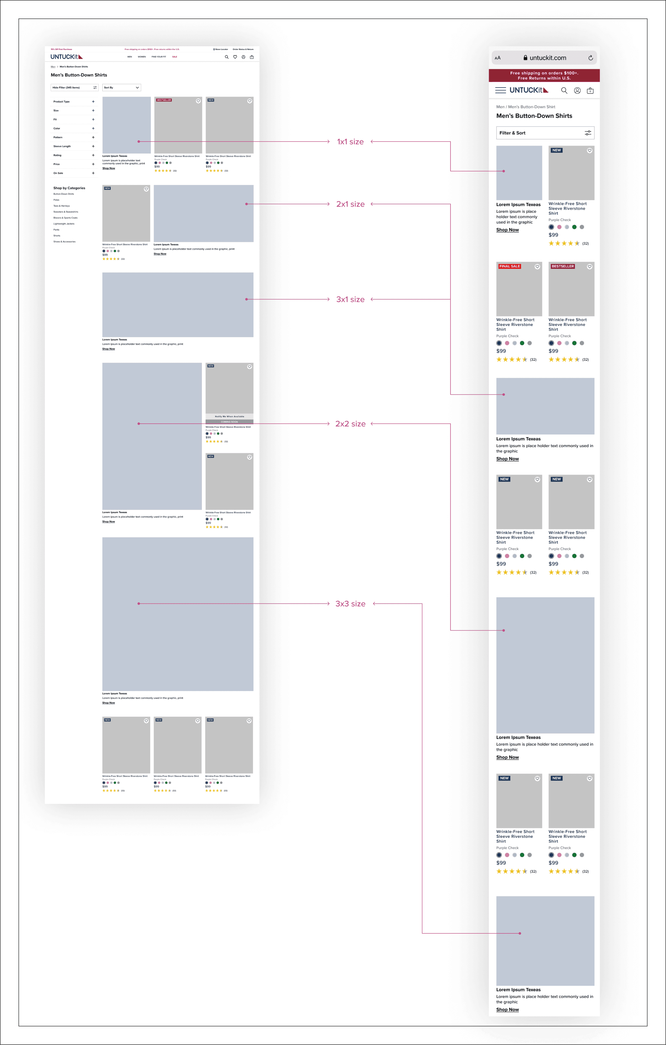 As the first senior leader focused on UX and UI at UNTUCKit, I initiated the development of our design system in Figma, establishing design guidelines and components. This system is now heavily used by both developers and site designers, and I envision it evolving into a cohesive tool that will be adopted across all channels, including websites, emails, and social media.
