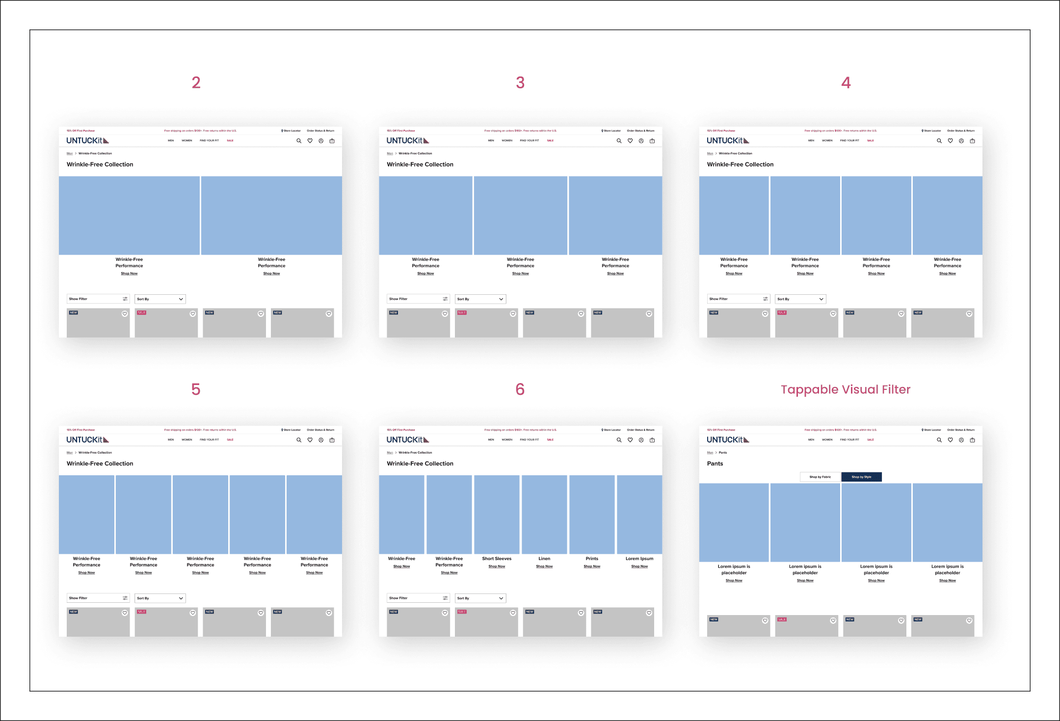 We replaced a static, unresponsive image banner with a dynamic visual guidance system that encourages immediate user engagement and efficiently filters sub-categories. This visual filter can be configured to range from 2 to 6 categories, depending on the strategies employed. Additionally, I implemented tabbed filters to allow customers to shop by the most-clicked attributes.