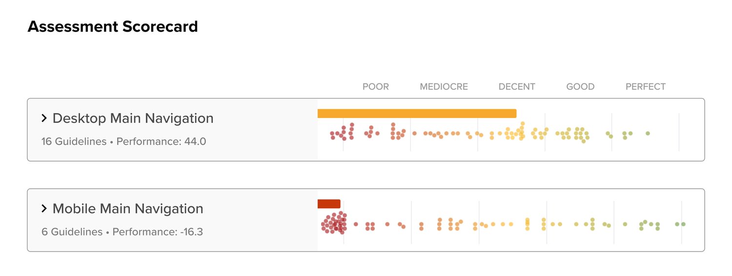 *Note: Based on Baymard, the navigation menu is ranked on the lower end of “Decent” & “Poor” for mobile experience.